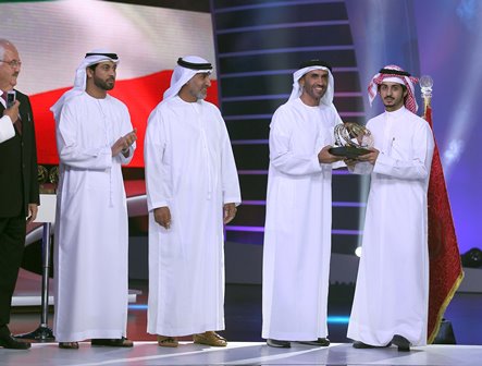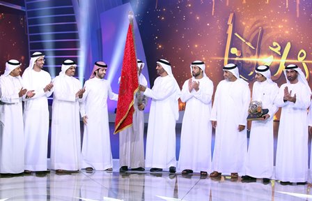 الشيخ نهيان بن زايد آل نهيان رئيس مجلس أمناء مؤسسة زايد بن سلطان آل نهيان للأعمال الخيرية والإنسانية رئيس مجلس أبوظبي الرياضي؛ سلّم البيرق للشاعر الفائز بحضور معالي اللواء ركن طيار فارس خلف المزروعي رئيس لجنة إدارة المهرجانات والبرامج الثقافية والتراثية بأبوظبي، والسيد عيسى سيف المزروعي مدير إدارة السياسات والمشاريع الخاصة في لجنة إدارة المهرجانات والبرامج الثقافية والتراثية، وأعضاء لجنة التحكيم الأستاذ سلطان العميمي، ود. غسان الحسين، والشاعر حمد السعيد، وعضوي اللجنة الاستشارية تركي المريخي وبدر الصفوق، وعدد كبير من المسؤولين والشعراء وجمهور غفير لم يتسع مسرح شاطئ الراحة لفرحه.